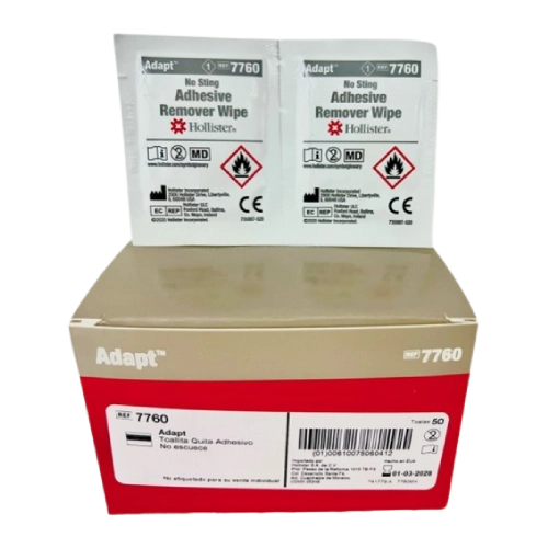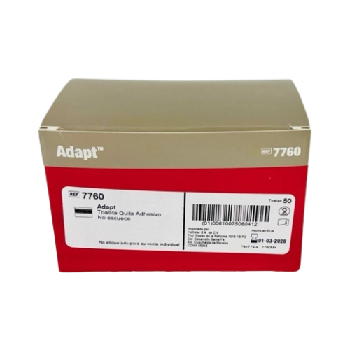 Característica: Adapt Toallita removedor de adhesivo es libre de alcohol a base de silicón. Remueve adhesivos y barreras de manera gentil, fácil y rápida. Elimina residuos de anteriores adhesivos dejando la piel apta para una nueva colocación.