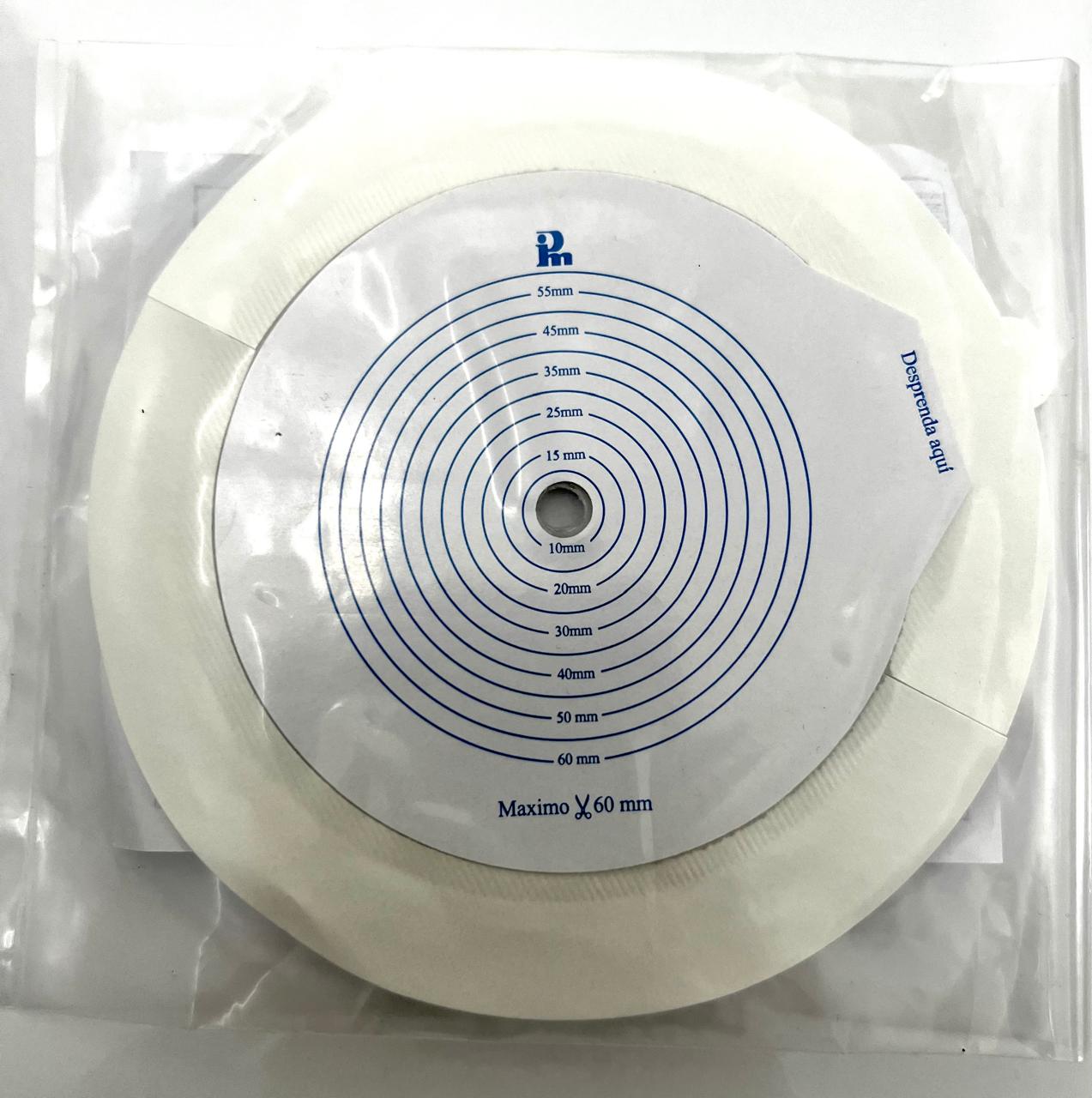 Características: Barrera para ostomía de carboximetilcelulosa sódica y marco microporoso, plana recortable hasta 60mm con Aro de ensamble 60mm