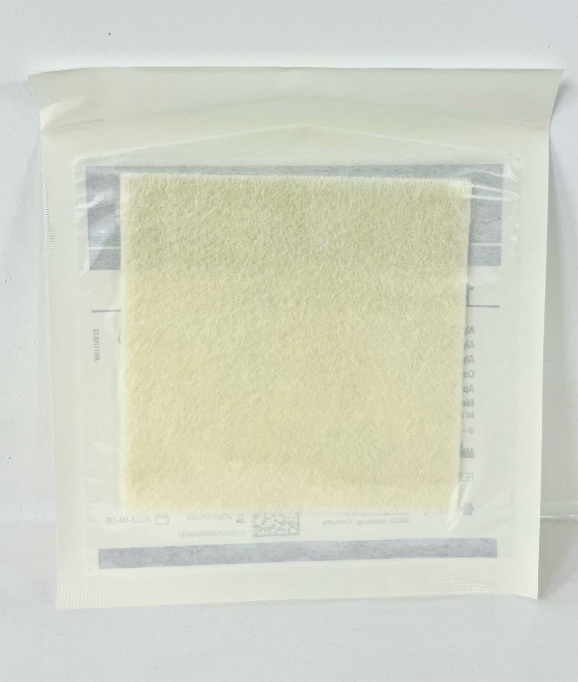- Apósito suave, blanco y estéril.