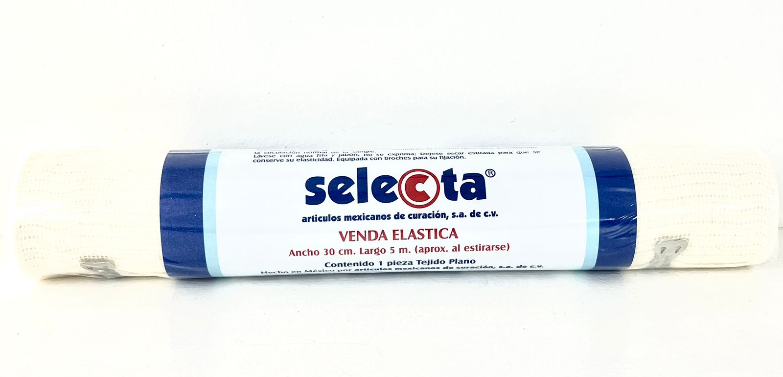 Selecta Venda Elástica Tejido 60% Hilo de algodón y 40% fibras sintéticas. Equipada con broches para su fijación Material de curación no esterilizado.